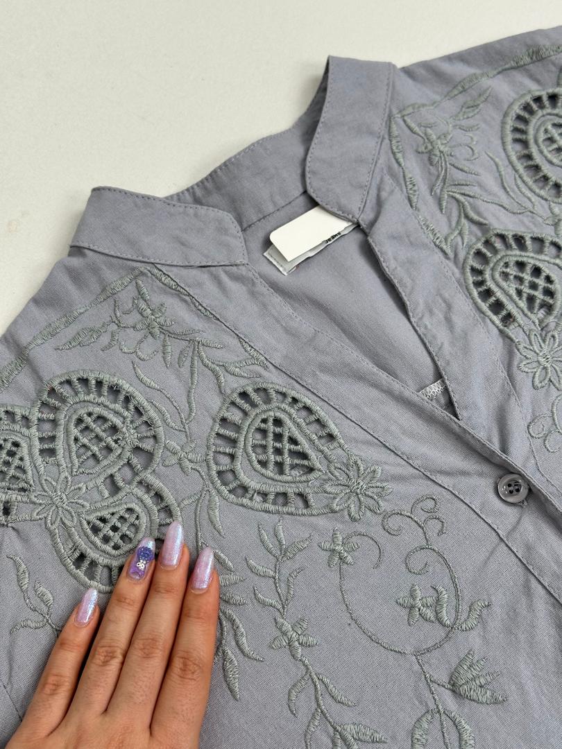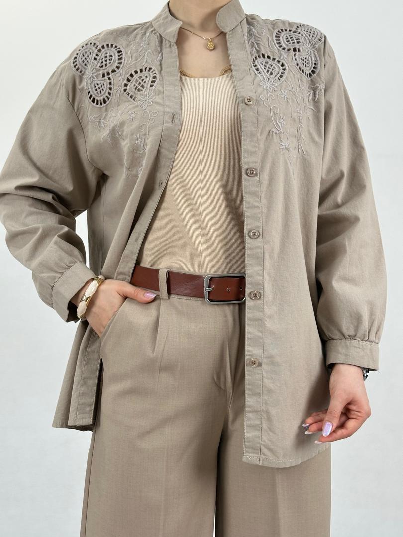 ویژگیهای این محصول شامل: - پارچه: لینن شسته شده، بسیار سبک و خنک. - گلدوزی: روی جلوی کار با ظرافت و زیبایی چشمگیر. - فری سایز: مناسب سایز 36تا44. - آستین: دارای مچ با تک دکمه (مدل شومیز). - طراحی پشت: دارای پیله برای راحتی و استایل منحصر به فرد.