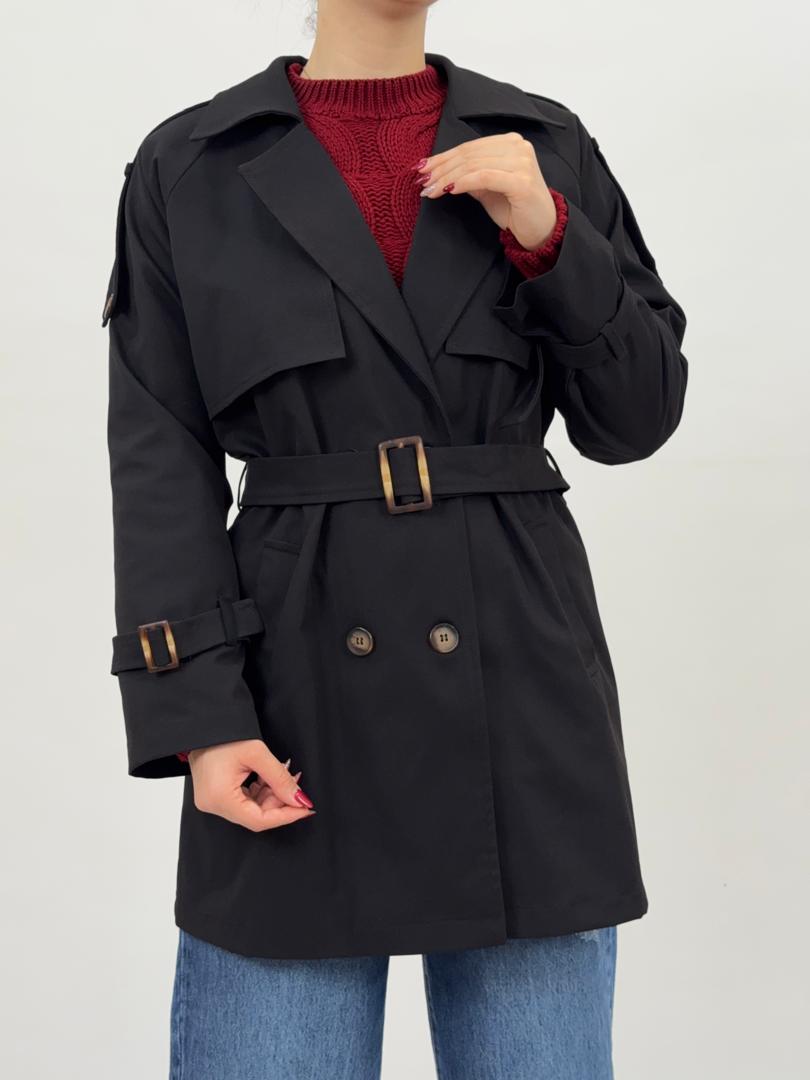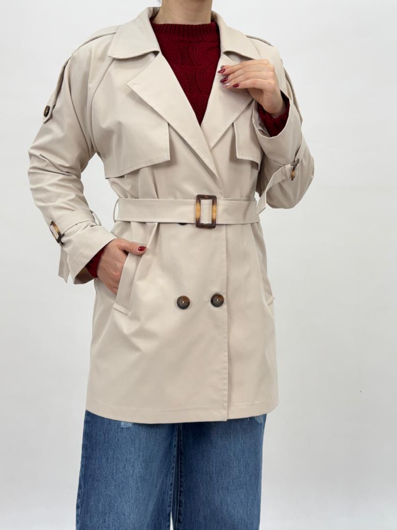 آستینها و جلوی بارانی دارای طراحی کمر بندخورده هستند که هم زیبایی و هم کارایی را افزایش میدهد.