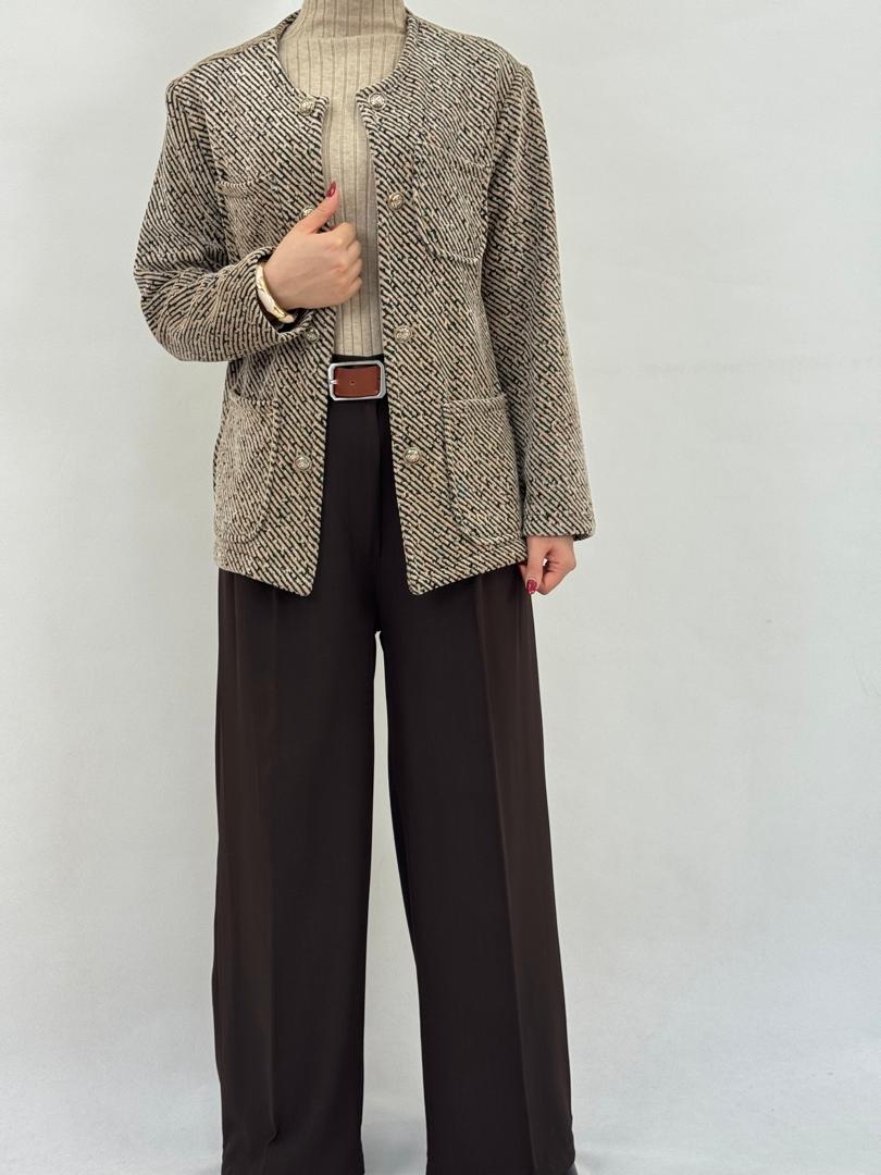 کت شانل یکی از بهترین انتخابها برای فصلهای پاییز و زمستان است و نیلی پلاس این بار برای شما این کت بینظیر را طراحی کرده است. این کت از پارچه لمزورتهیه شده که ضمن دارا بودن جنسی راحت، زیبایی منحصر به فردی به شما میبخشد.