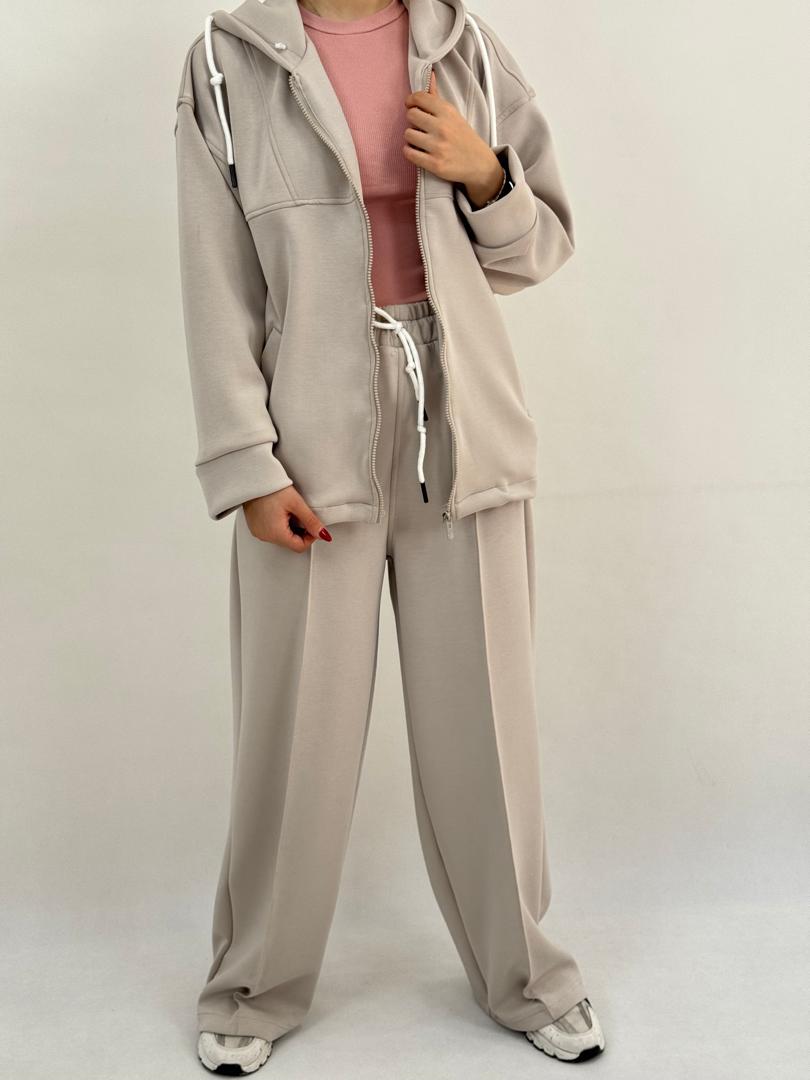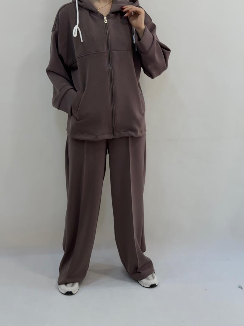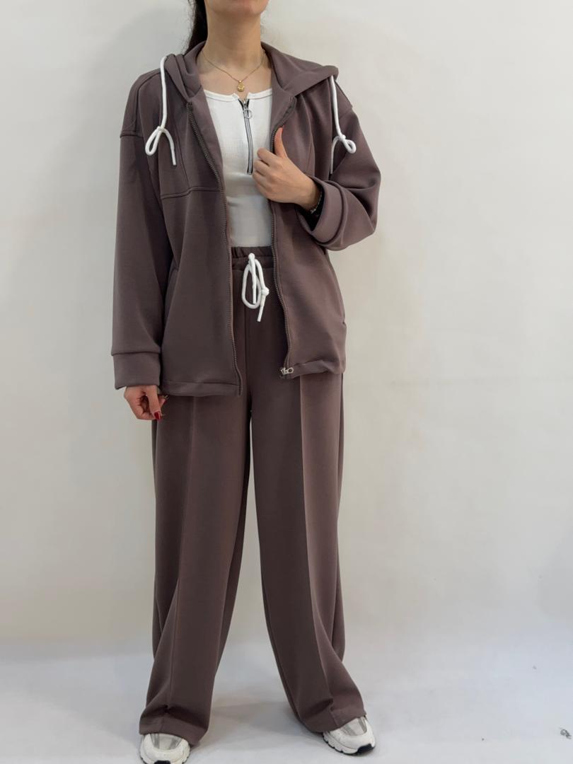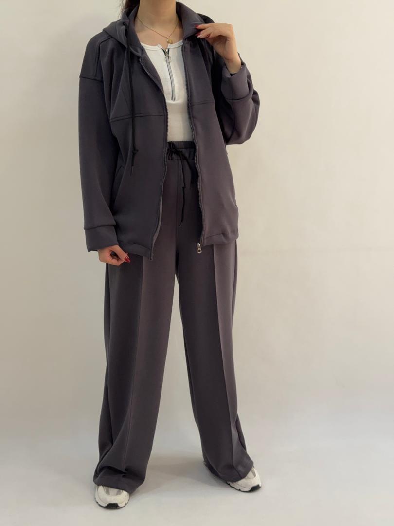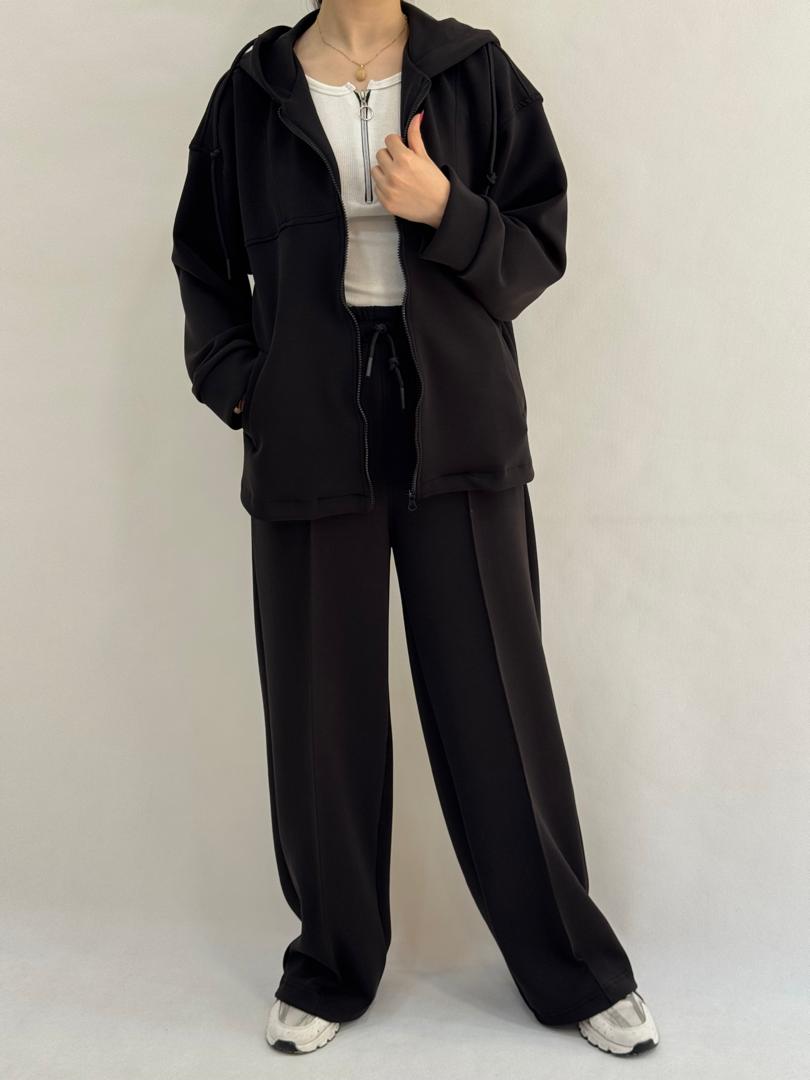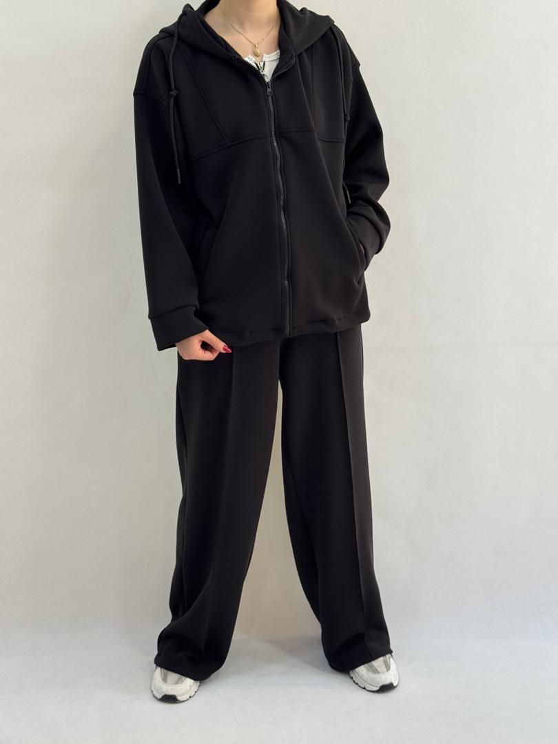ست اویشو کلاهدار شامل سویشرت و شلوار با طراحی مدرن و راحت است که ویژگیهای آن به شرح زیر است:
