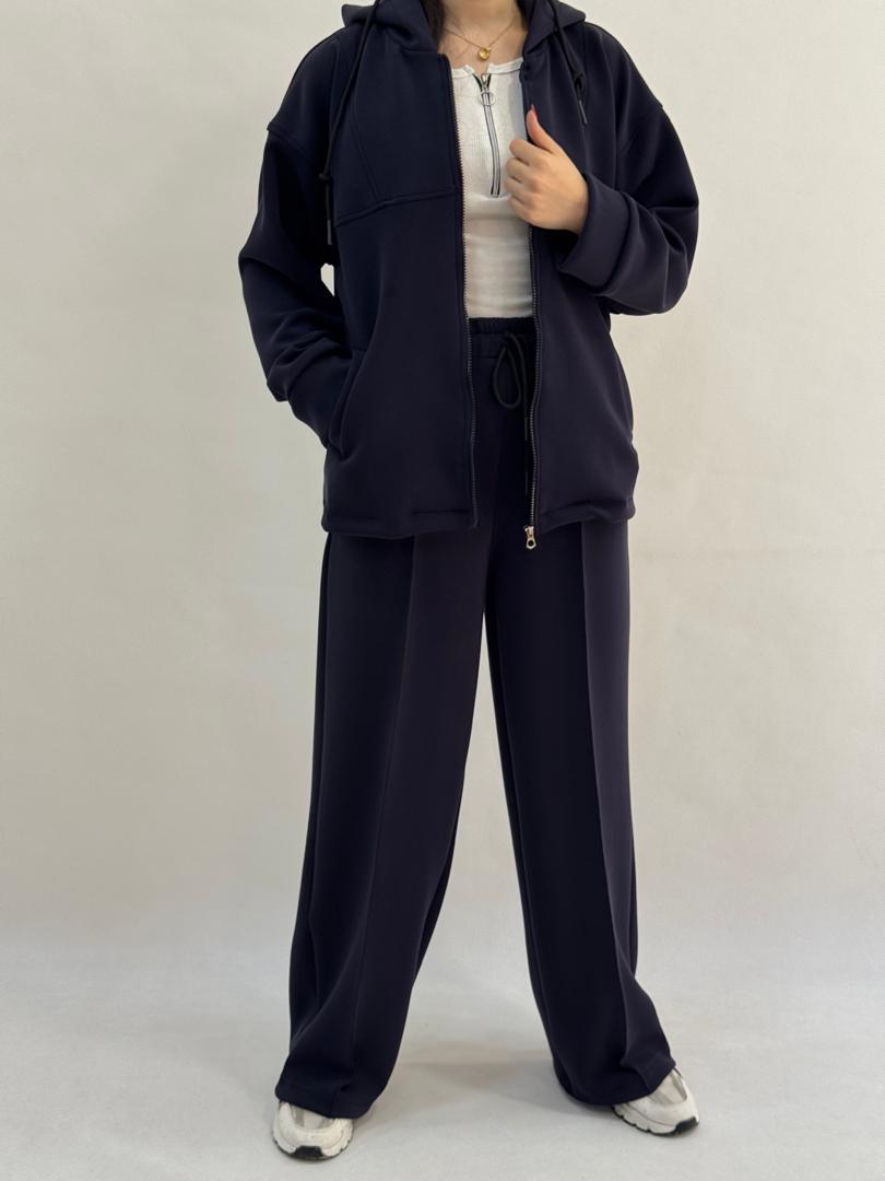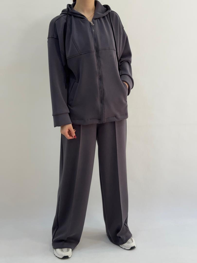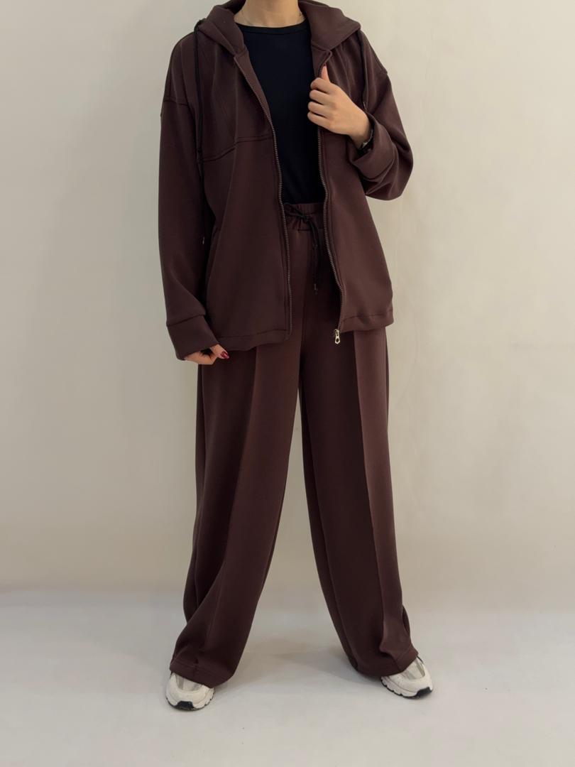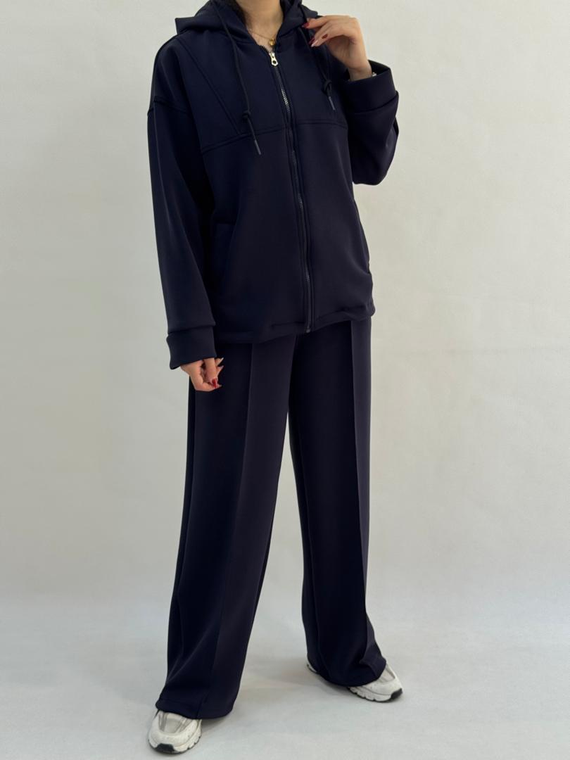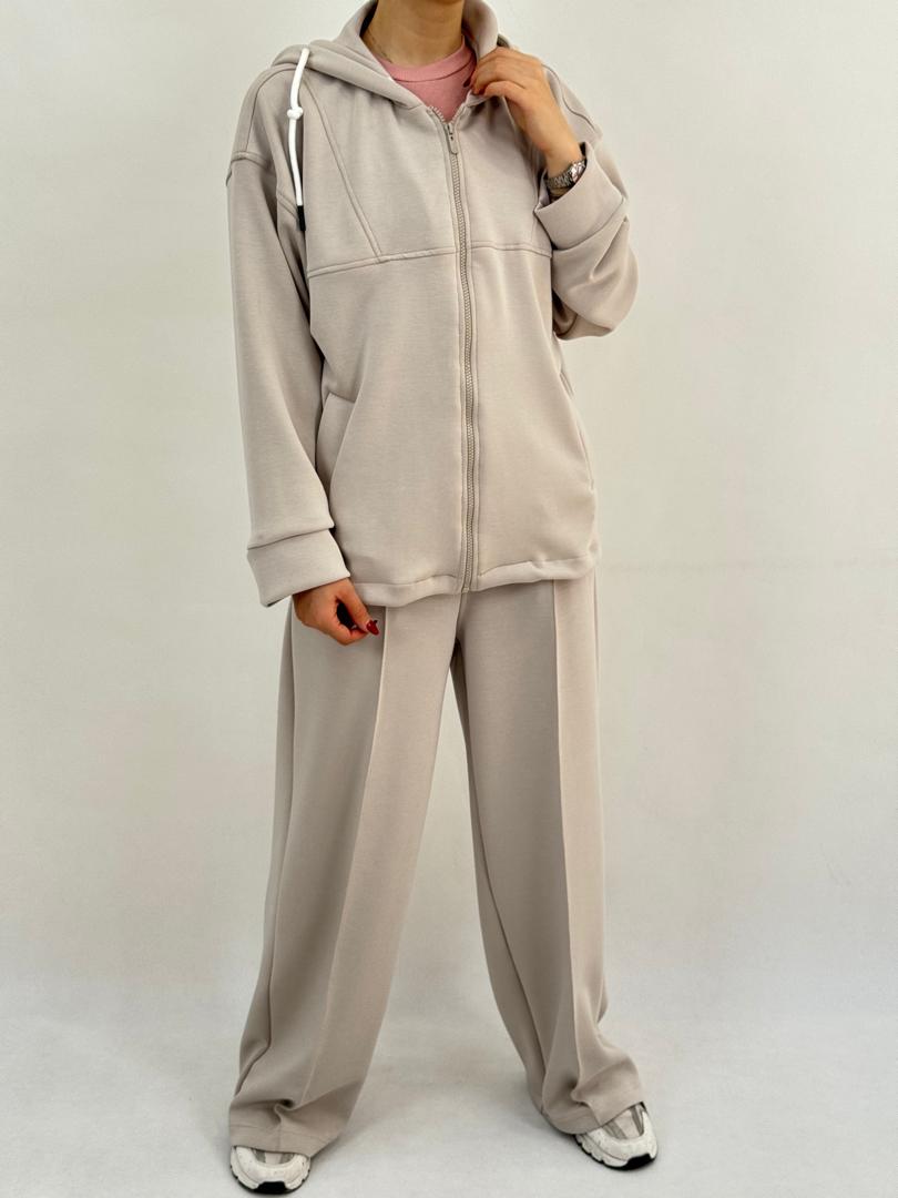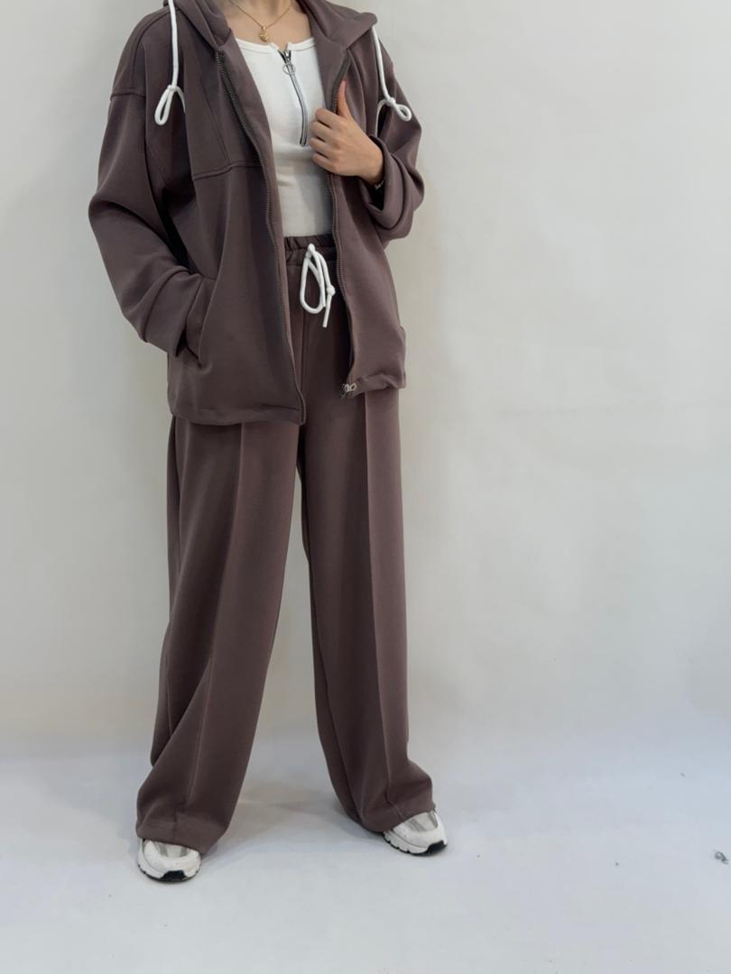 ست اویشو کلاهدار شامل سویشرت و شلوار با طراحی مدرن و راحت است که ویژگیهای آن به شرح زیر است: