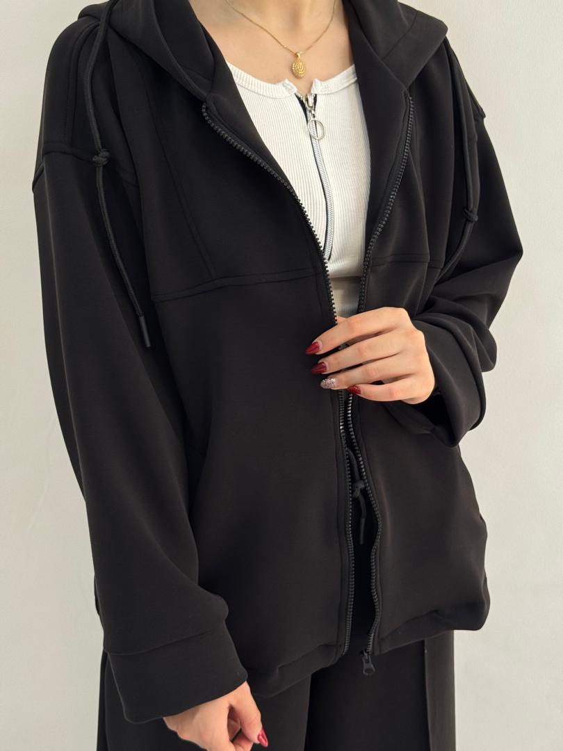 - سویشرت کلاهدار جیب دار و زیپ دار