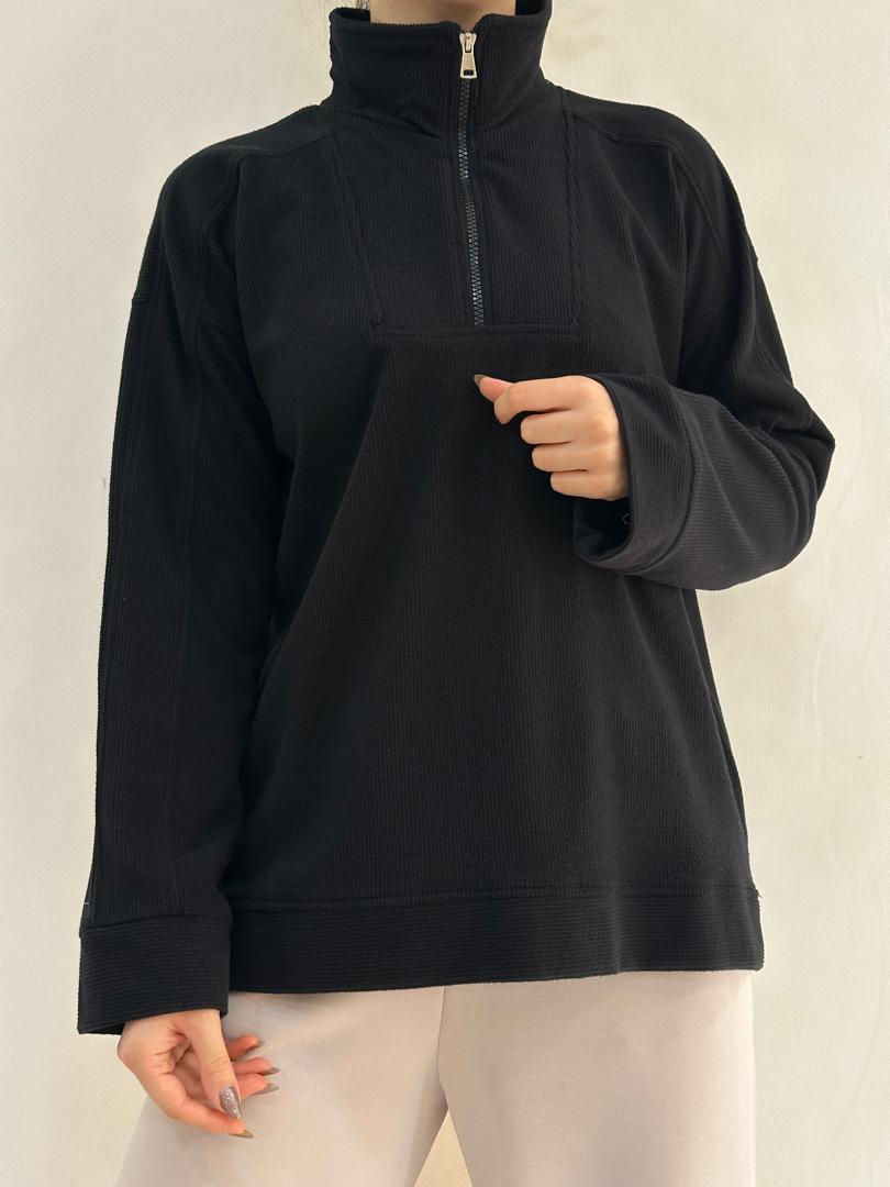 - طراحی نیم زیپ: نیم زیپ کاربردی این پولیور به شما امکان تنظیم قابلیت استفاده از آن را به صورت کامل یا نیمه باز میدهد.