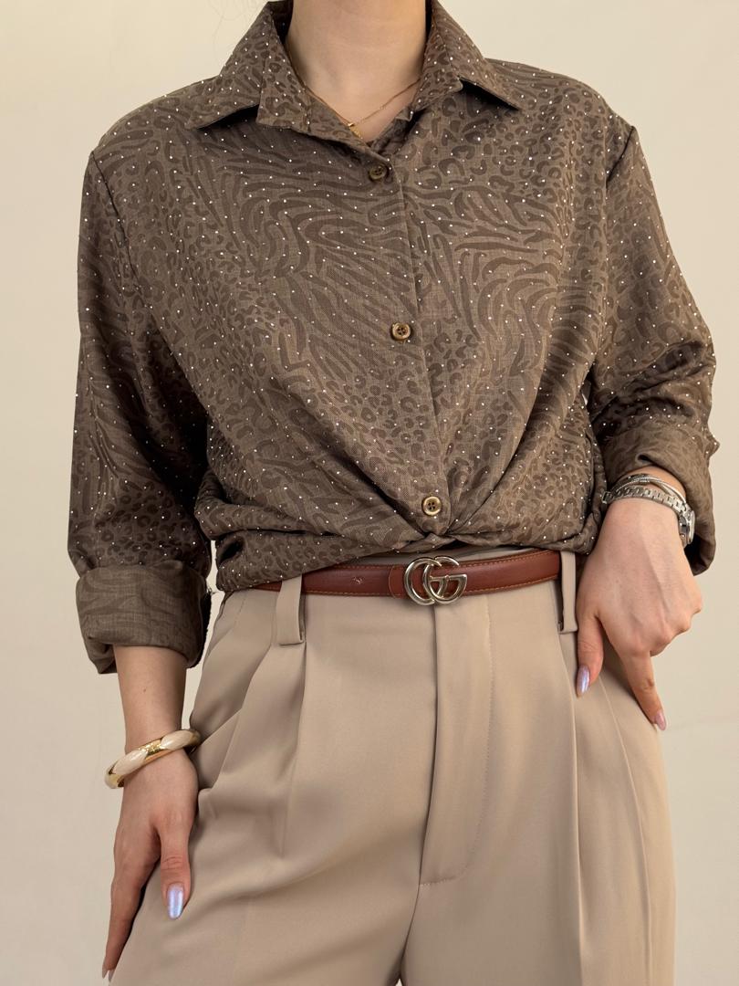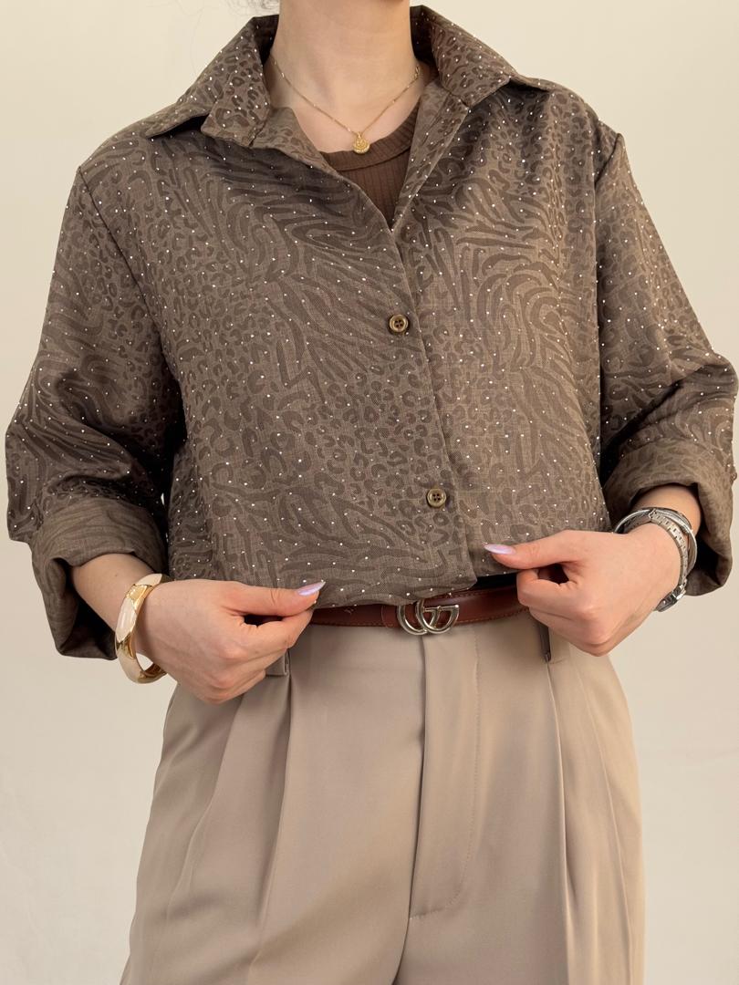 شومیز پلنگی نگین دار